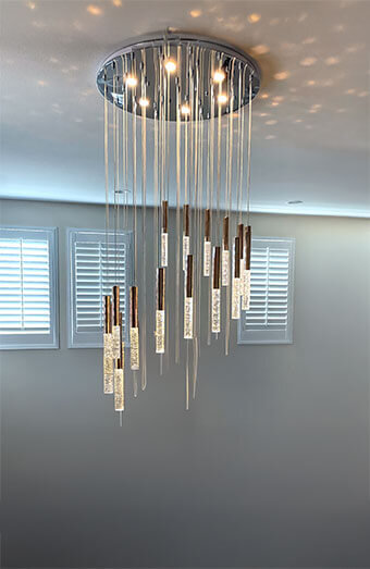 Professional installation of all lighting types including pendant lights, downlights, oyster lights, and decorative chandeliers for new homes and renovations.